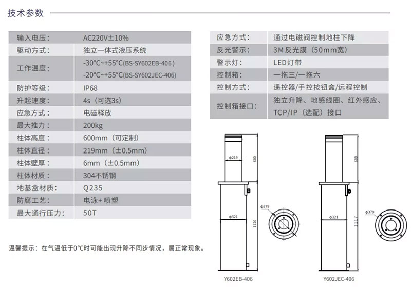 停电状态下,可通过电磁阀装置,轻松将柱体降落;